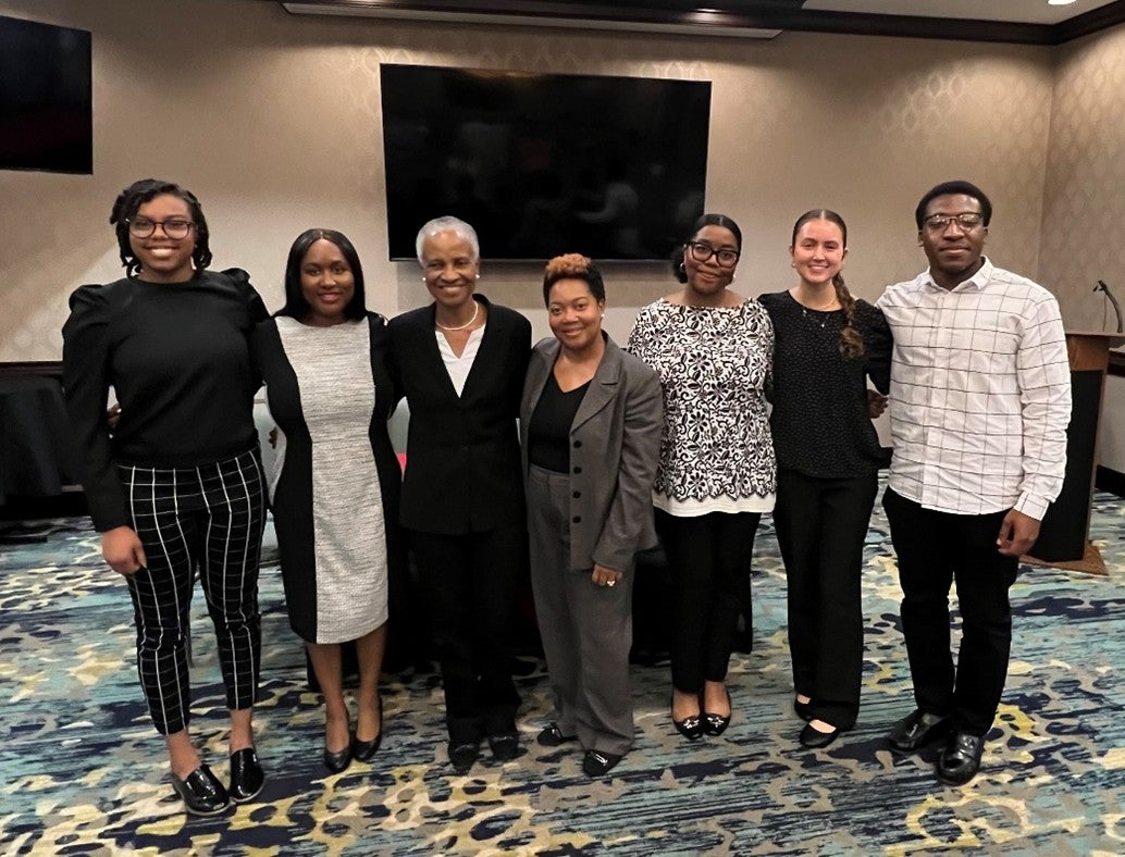 Left to right: Dairelle Health, Ellen Peterson, Dr. Penny Ralston, Dr. Iris Young-Clark, Sarai Jean-Pierre, Ella Windlan, and E’ven Shelton.